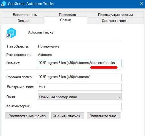 make a copy from cars shortcut (copy and past) and then on new one right click, properties and change to “C:\Program Files (x86)\Autocom\Main.exe” trucks