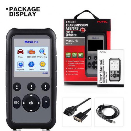 Autel MaxiLink ML629 is a versatile diagnostic scanner that could diagnose car ABS, SRS, Engine and Transmission systems without compromising complete OBD2 functions including read codes, clear codes, live data, freeze frame data, retrieve I/M readiness status, O2 Monitor Test, On-Board Monitor Test, Component Test, retrieve vehicle information, module present and DTC lookup. With this OBD2 scan tool, you are able to view diagnostic live data in text and graph of custom multiple sensors and instant access to DTC definitions stored in the DTC library for efficient and accurate diagnosis. MaxiLink ML629 Upgrade Version of Autel Autolink 619 (add Engine and Transmission)
