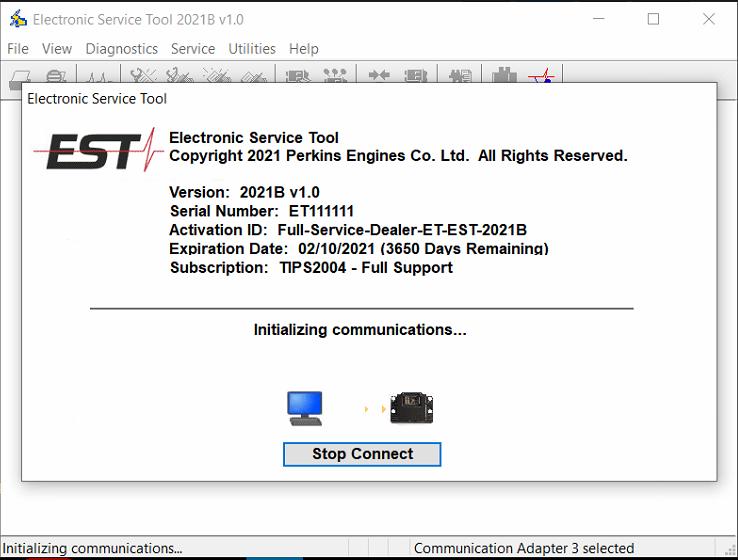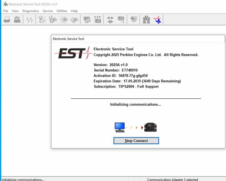 Perkins EST 2025A software is designed for Perkins Engines & Generators.it will communicate with Communication Adapter 3 , allowing existing and potential problems to be diagnosed, products to be configured, and data to be obtained for analysis.