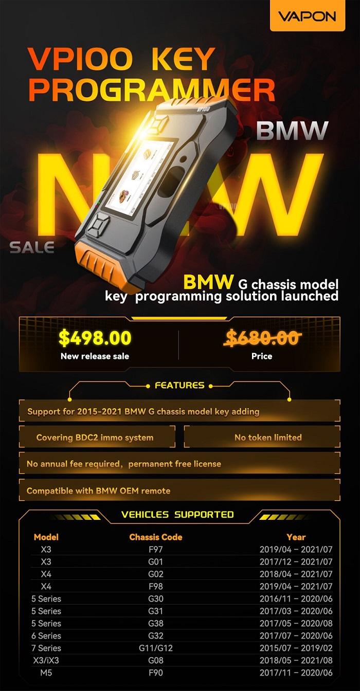 VAPON VP100 adding Remote keys for BMW G Chassis(2015-2021 Year),Without Tokens and Free Update life-time.