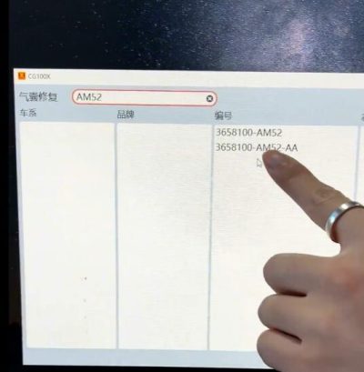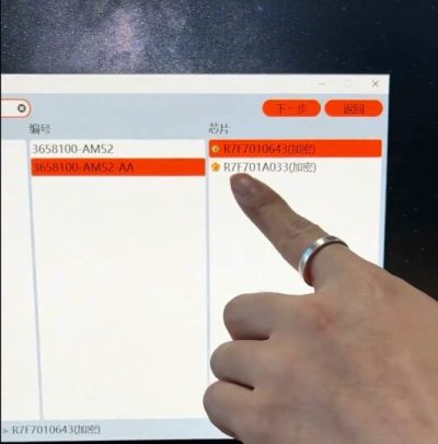 Search Part Number 3658100-AM52-AA-R7F701A033 encrypted on CG100X software.