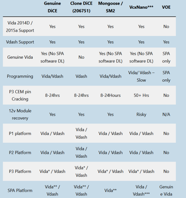 - For basic code reading with Vida2014d , Vxdiag VCX is fine, on P3 platform and newer cars ,VCXNano poor performance starts to show its weakness mostly due to its slowness. SPA platform cars, forget about it.I personally would never entertain any module programming with Vxdiag. There will big risky on bricked CEM,ECU modules